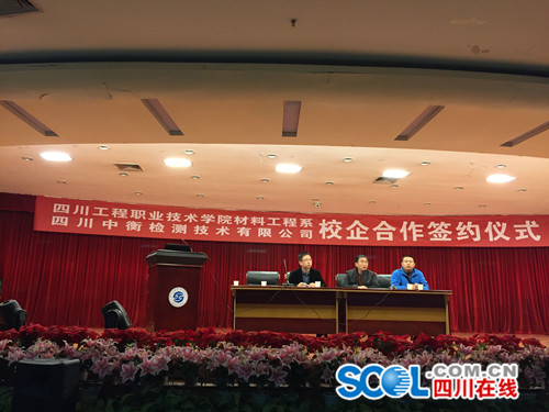 四川在線德陽消息(記者 古蓉媛)11月10日下午,四川工程職業技術學院材料工程系與四川中衡檢測技術有限公司簽署校企合作協議。據了解,為了破解畢業生專業技能的單一性難題,四川工院材料系主動與中衡檢測等企業進行合作,為學生搭建平臺,拓寬就業渠道,提高學生實踐能力。此次校企合作協議的簽訂,將更有利于校企雙方真正做到優勢互補、資源互用、利益共享,實現合作共贏,共同發展。
