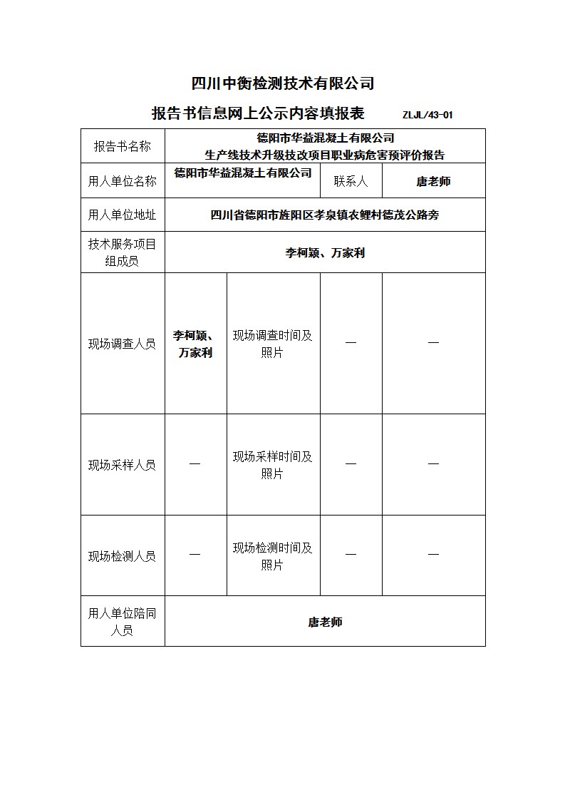德陽市華益混凝土有限公司 生產線技術升級技改項目職業病危害預評價報告