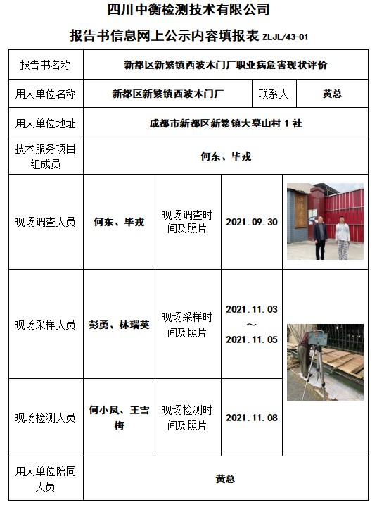 新都區(qū)新繁鎮(zhèn)西波木門廠職業(yè)病危害現(xiàn)狀評(píng)價(jià)