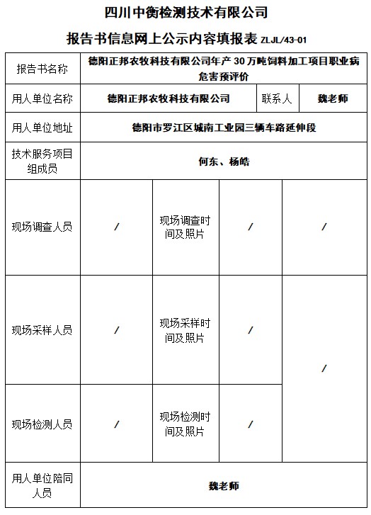 德陽正邦農牧科技有限公司年產30萬噸飼料加工項目職業病危害預評價