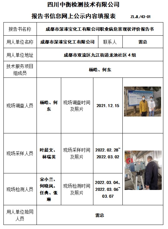 成都市深漆寶化工有限公司職業病危害現狀評價