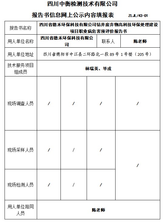 四川省德禾環保科技有限公司鉆井廢棄物高科技環保處理建設項目職業病危害預評價