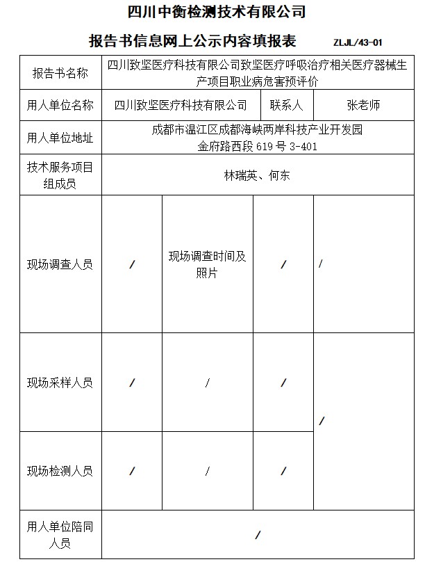 四川致堅醫療科技有限公司致堅醫療呼吸治療相關醫療器械生產項目職業病危害預評價