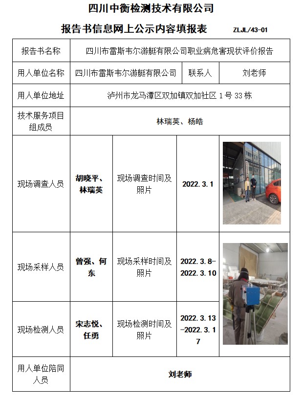 四川布雷斯韋爾游艇有限公司職業病危害現狀評價