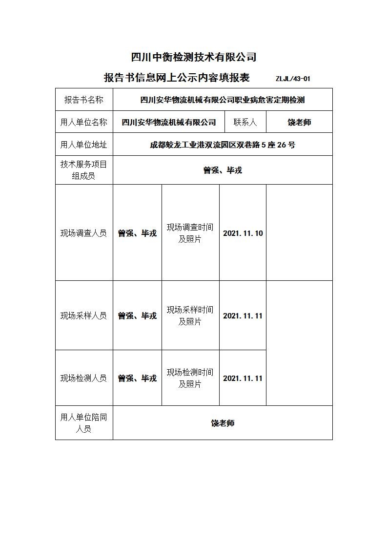 四川安華物流機(jī)械有限公司職業(yè)病危害定期檢測