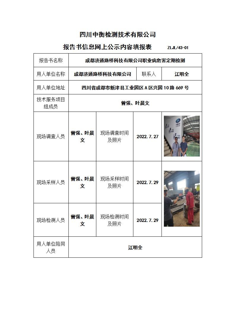 成都濟通路橋科技有限公司職業(yè)病危害定期檢測