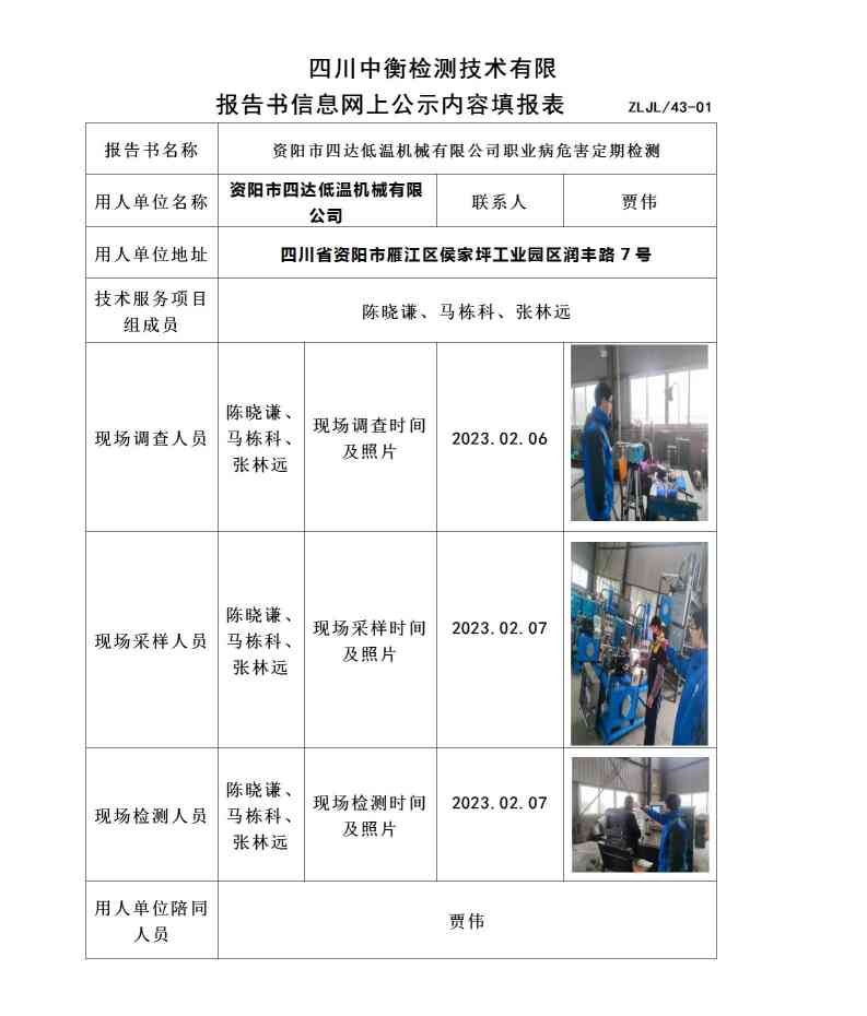 資陽市四達低溫機械有限公司職業病危害定期檢測