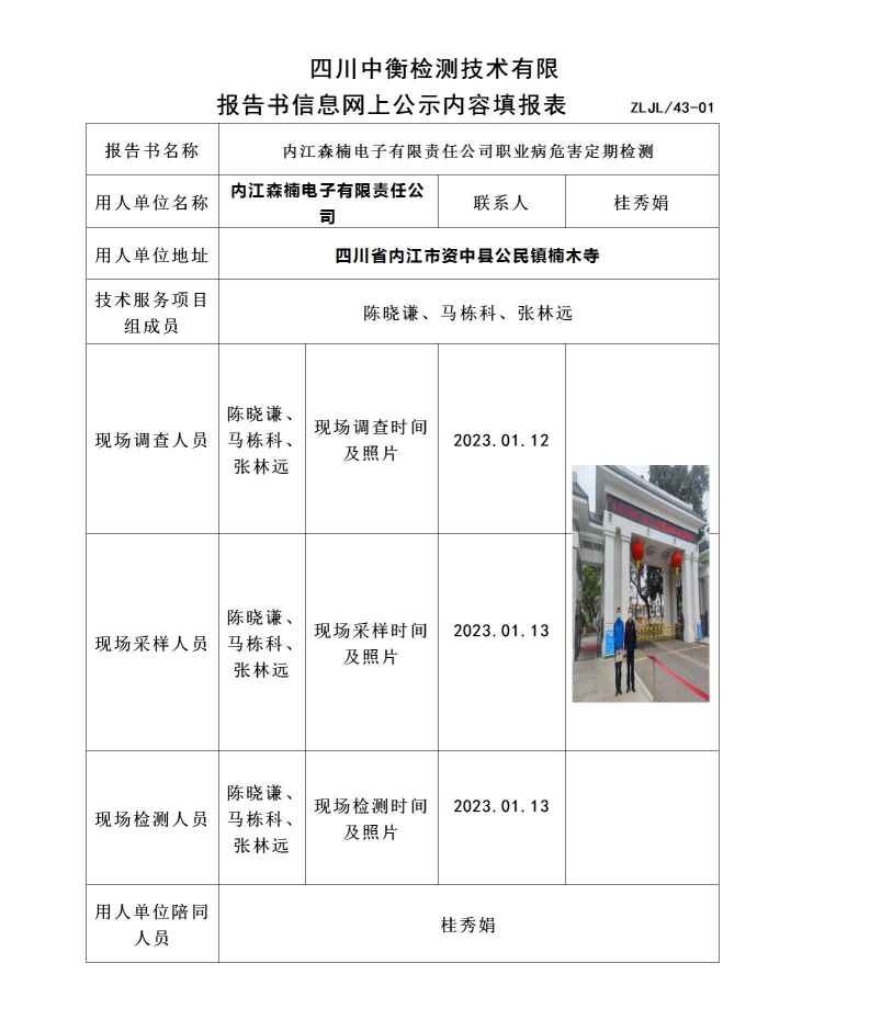 內(nèi)江森楠電子有限責任公司職業(yè)病危害定期檢測