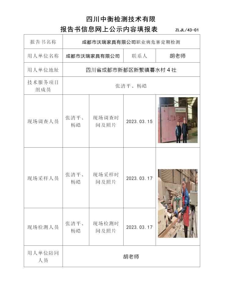 成都市沃瑞家具有限公司職業病危害定期檢測