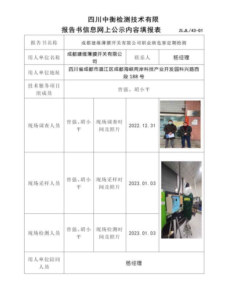 成都建維薄膜開關有限公司職業病危害定期檢測