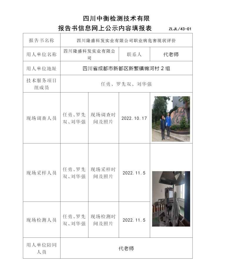 四川隆盛科發(fā)實業(yè)有限公司職業(yè)病危害現(xiàn)狀評價