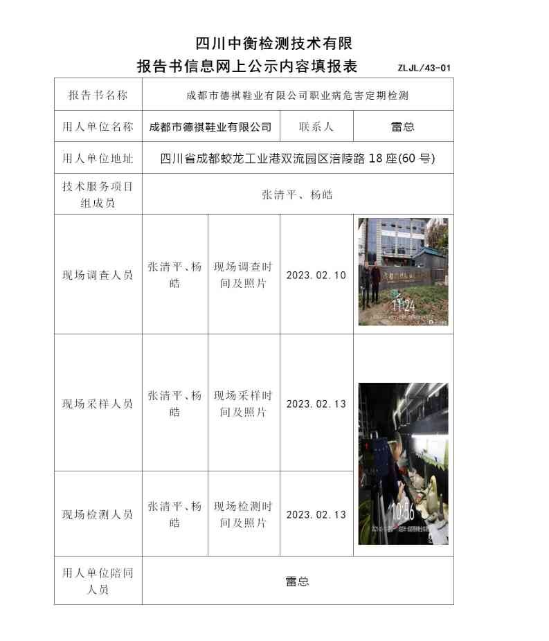 成都市德祺鞋業有限公司職業病危害定期檢測