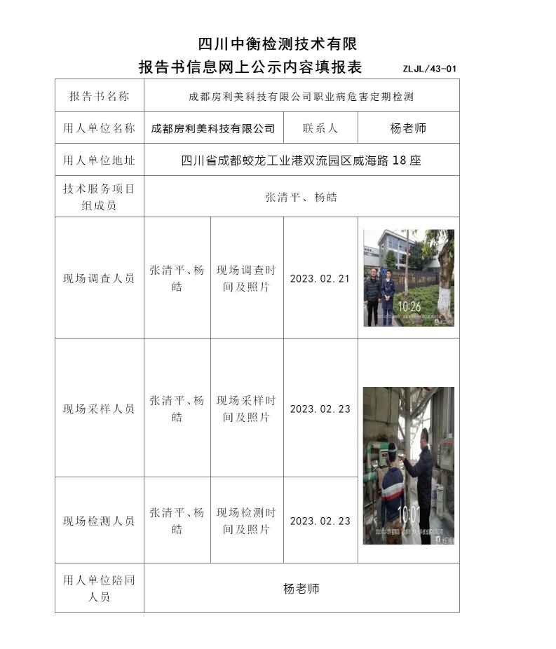 成都房利美科技有限公司職業(yè)病危害定期檢測(cè)