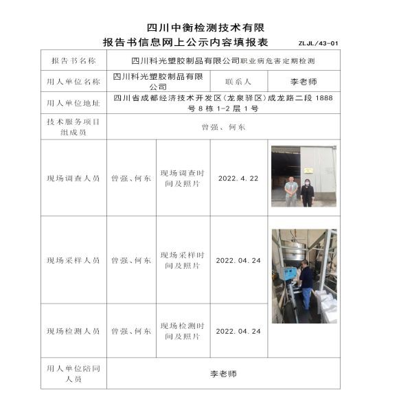 四川科光塑膠制品有限公司控制效果評價
