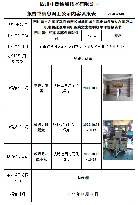 四川富生汽車零部件有限公司控制效果評價