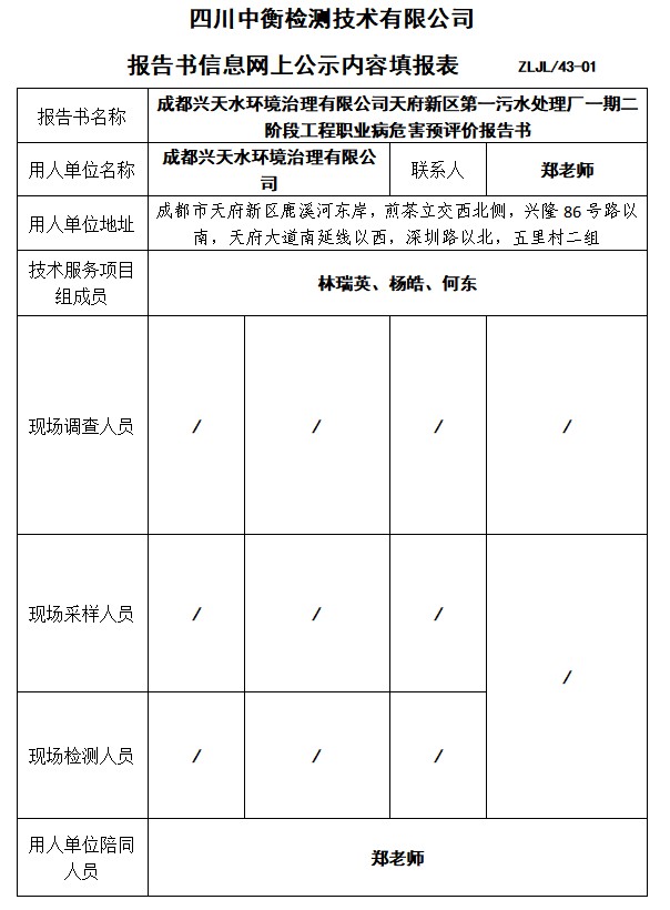 成都興天水環境治理有限公司天府新區第一污水處理廠一期二階段工程預評價