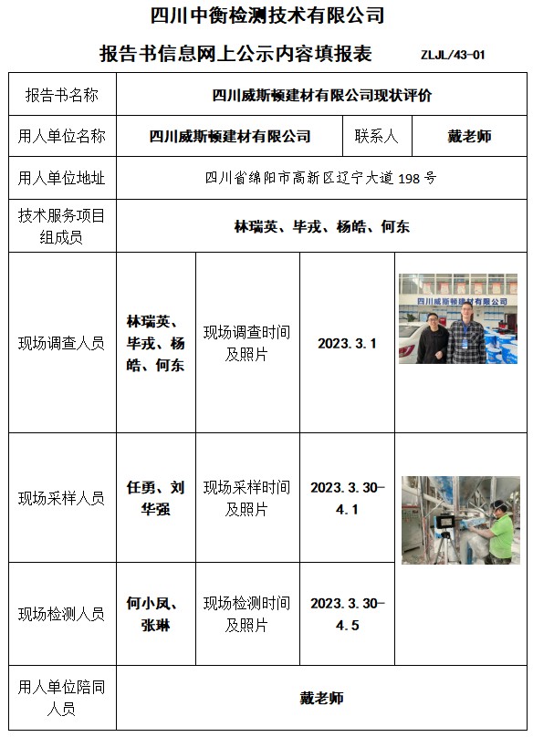 四川威斯頓建材有限公司現狀評價
