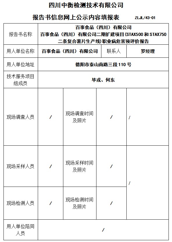 百事食品(四川)有限公司 百事食品(四川)有限公司二期擴(kuò)建項(xiàng)目(STAX500和STAX750二條復(fù)合薯片生產(chǎn)線)預(yù)評價