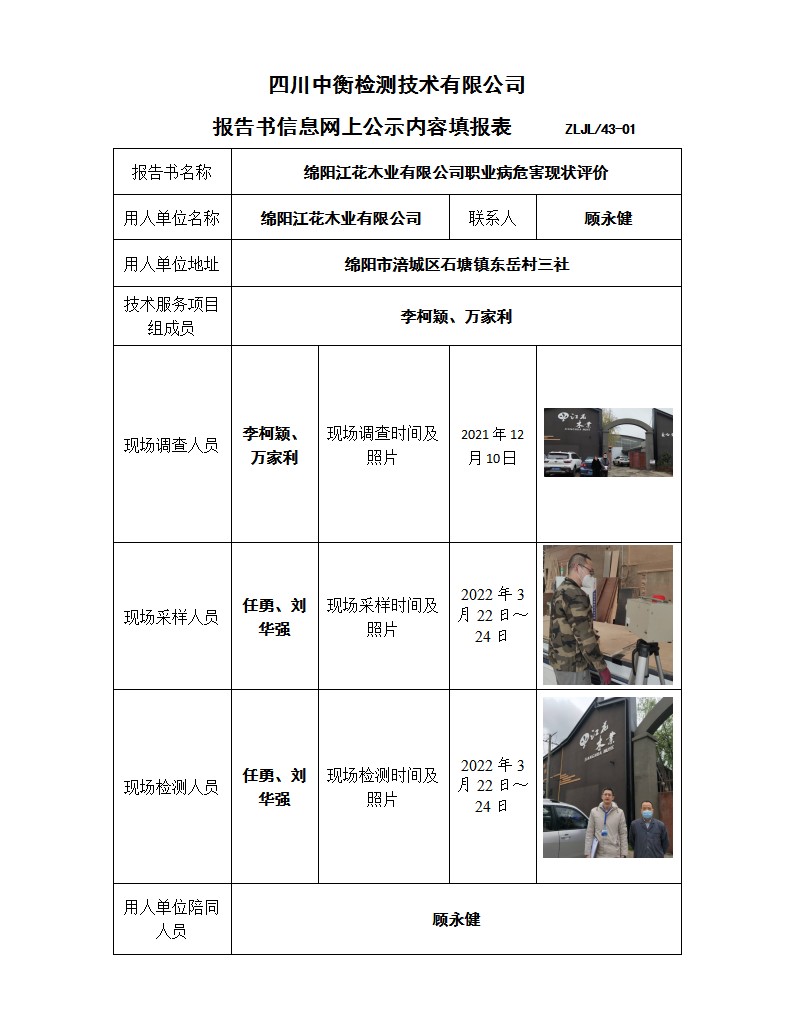 綿陽江花木業有限公司 職業病危害現狀評價報告書