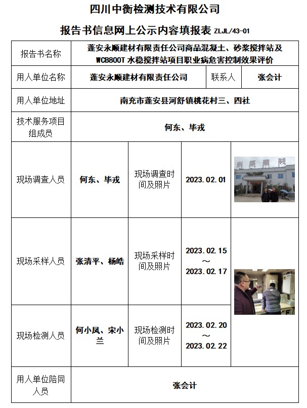 蓬安永順建材有限責(zé)任公司商品混凝土、砂漿攪拌站及WCB800T水穩(wěn)攪拌站項(xiàng)目控制效果評價