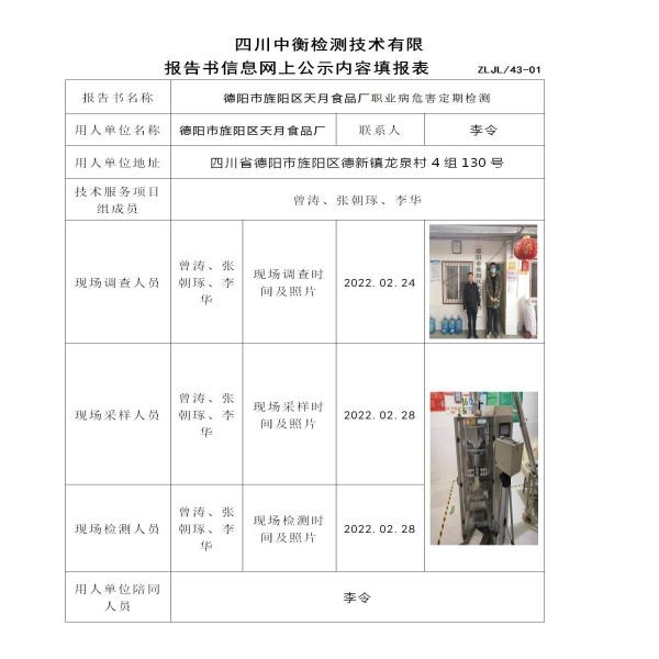 德陽市旌陽區天月食品廠定期檢測