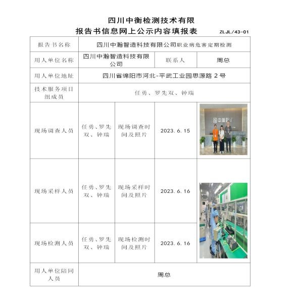 四川中瀚智造科技有限公司定期檢測