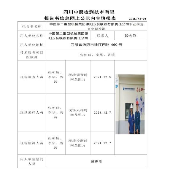 中國第二重型機械集團德陽萬航模鍛有限責任公司定期檢測