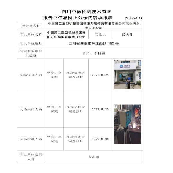 中國(guó)第二重型機(jī)械集團(tuán)德陽(yáng)萬(wàn)航模鍛有限責(zé)任公司定期檢測(cè)