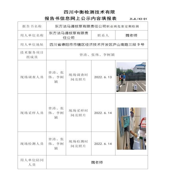 東方法馬通核泵有限責(zé)任公司定期檢測