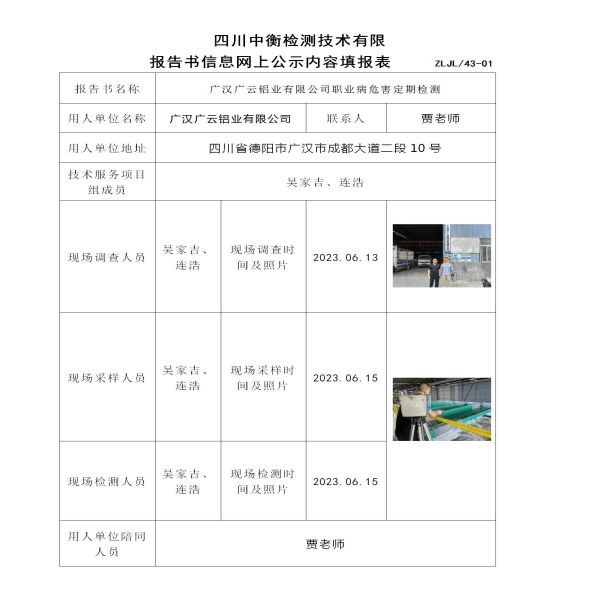 廣漢廣云鋁業有限公司定期檢測