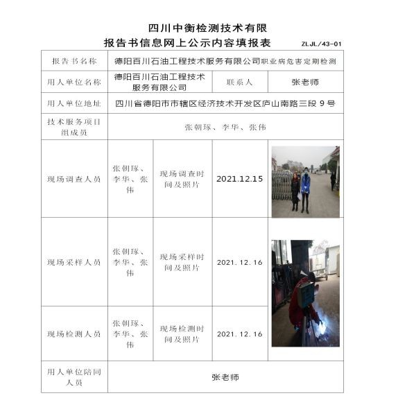 德陽百川石油工程技術(shù)服務(wù)有限公司定期檢測