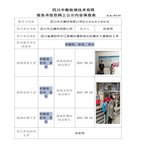 四川中沃建材有限公司定期檢測