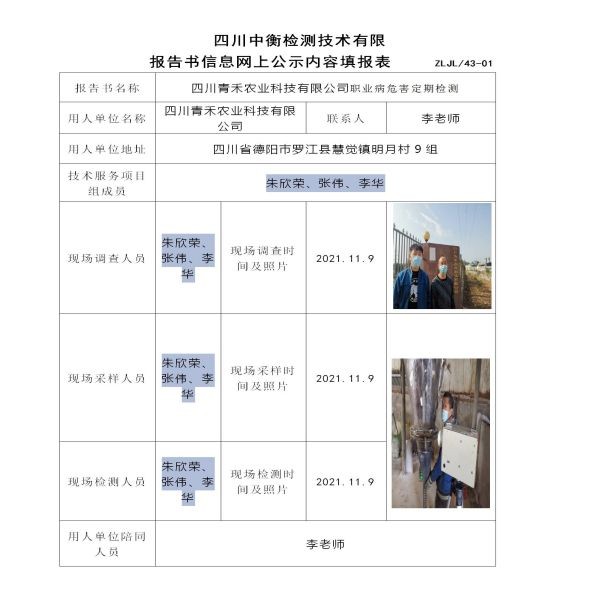 四川青禾農(nóng)業(yè)科技有限公司定期檢測(cè)
