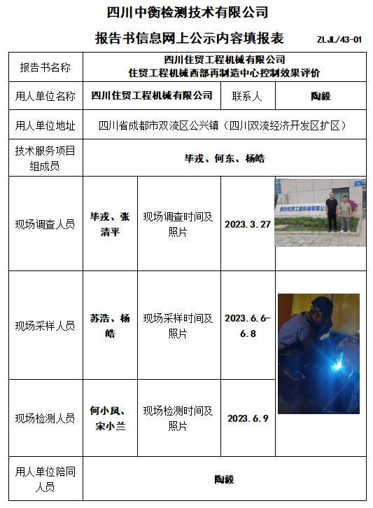 四川住貿工程機械有限公司 住貿工程機械西部再制造中心控制效果評價