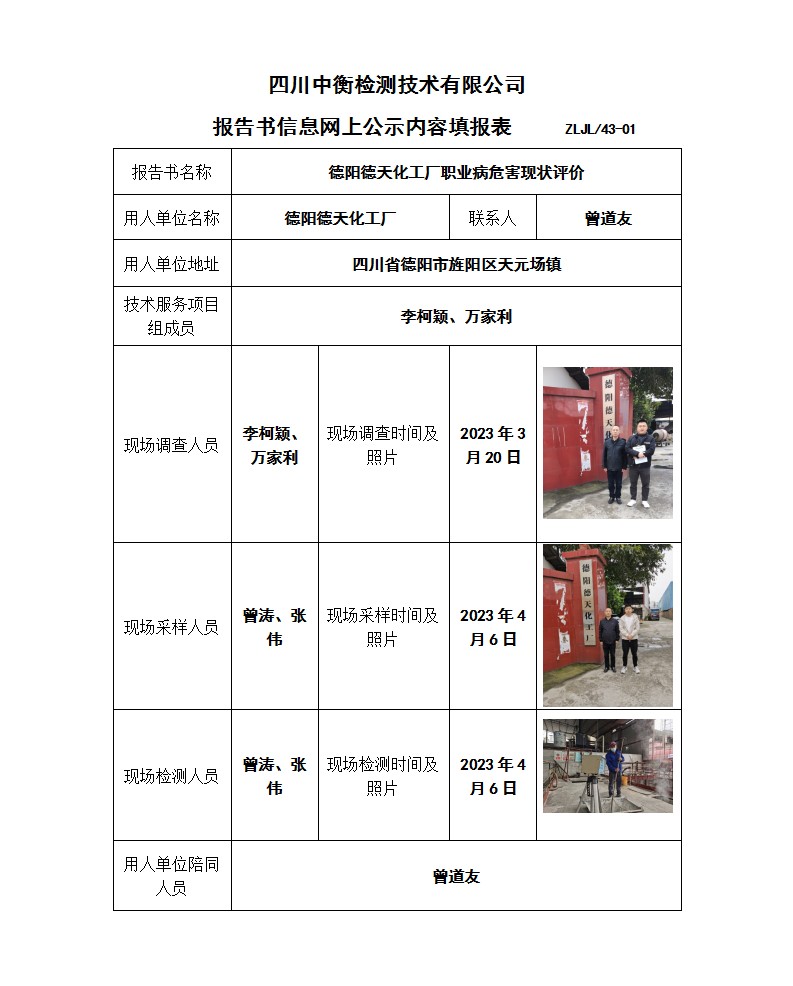 德陽德天化工廠職業病危害現狀評價