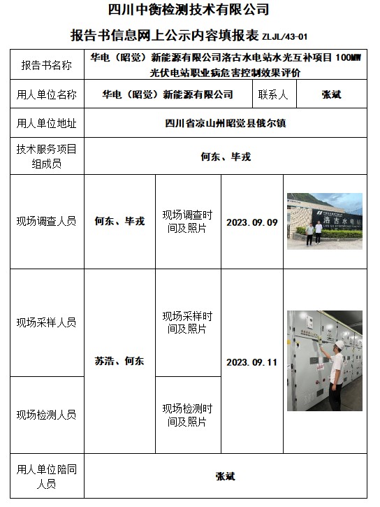 華電(昭覺)新能源有限公司洛古水電站水光互補(bǔ)項目100MW光伏電站職業(yè)病危害控制效果評價