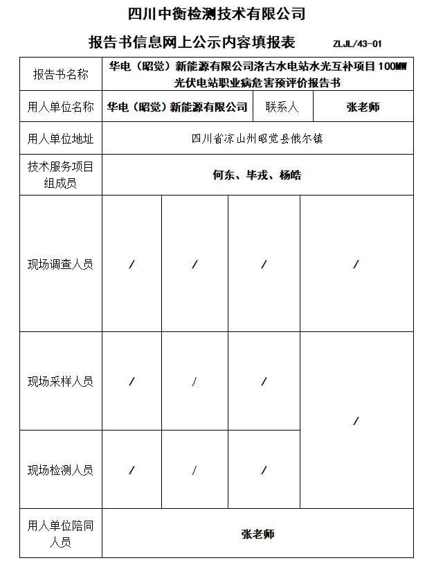 華電(昭覺)新能源有限公司洛古水電站水光互補(bǔ)項(xiàng)目100MW光伏電站職業(yè)病危害預(yù)評(píng)價(jià)報(bào)告書