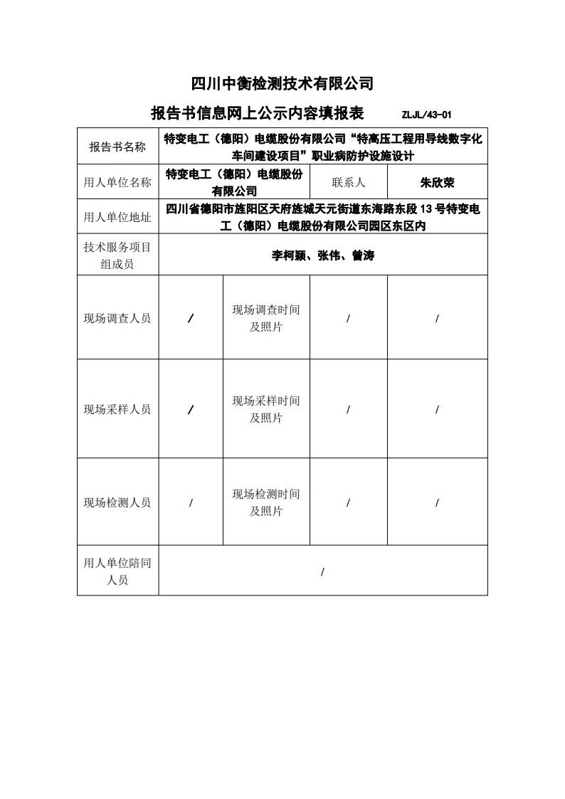 特變電工(德陽)電纜股份有限公司“特高壓工程用導線數字化車間建設項目”職業病防護設施設計