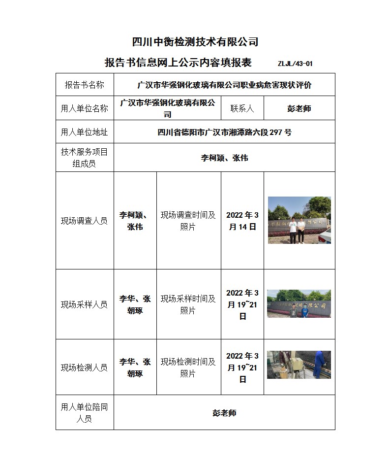 廣漢市華強(qiáng)鋼化玻璃有限公司 職業(yè)衛(wèi)生現(xiàn)狀評價